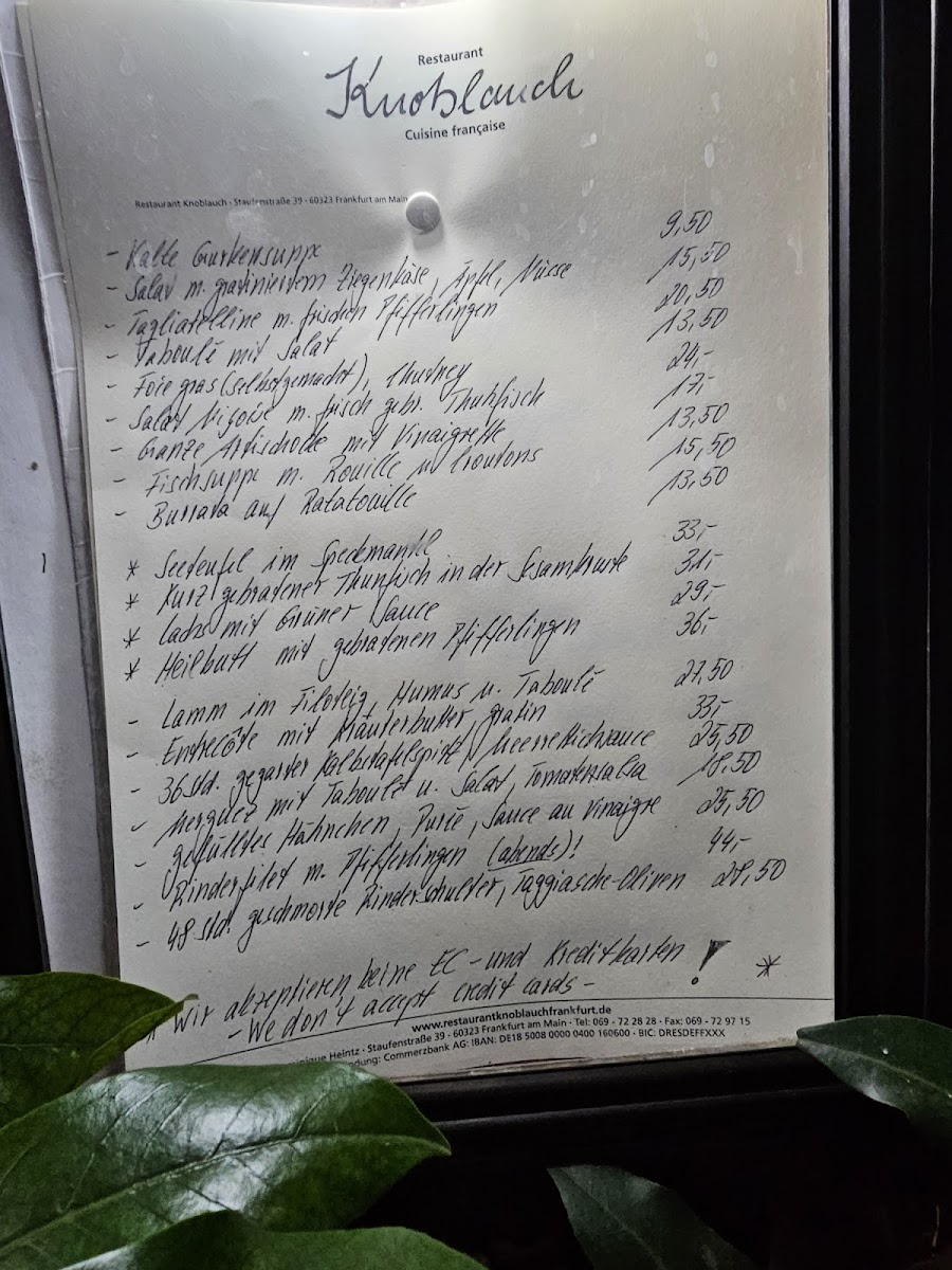 Finally, the Ochsenbäckchen, a slow-cooked beef cheek dish, is a standout for those looking for a robust, hearty meal that melts in your mouth with every bite. Each dish on the menu is carefully crafted to offer a fine balance of flavors, making Knoblauch an excellent choice for those seeking an exceptional dining experience in Frankfurt.